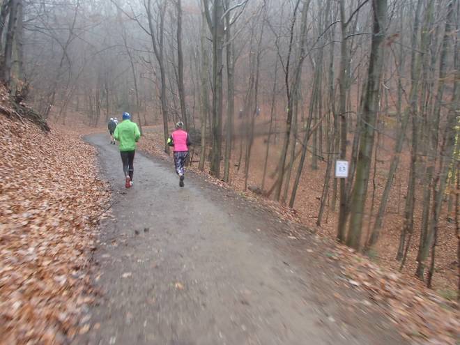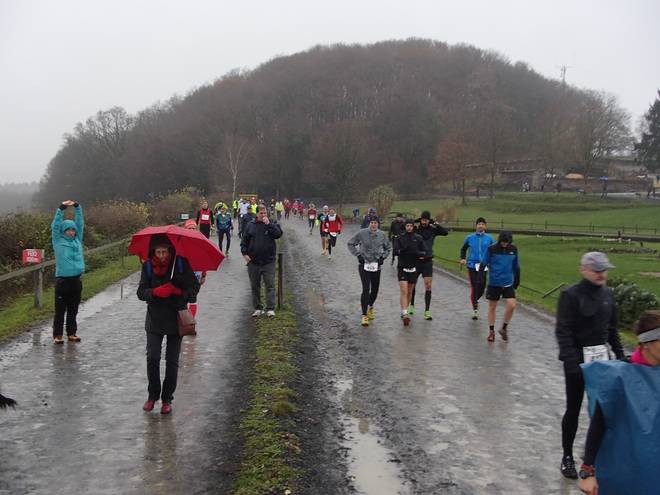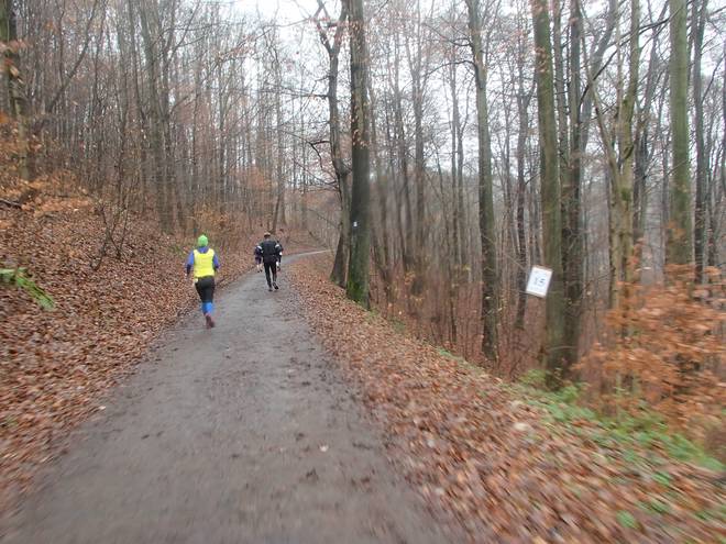 Drachenfels 11.22 Uhr / Km 12,3 Die Strecke hier war nun wieder mehr flach. Immer mal wieder etwas wellig, aber gut laufbar. |