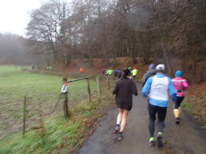 Am Markhövel 10.16 Uhr / Km 2,5 Für das Ankommen hatte ich mir so 4:40 bis 4:45 Stunden vorgestellt. Nicht so einfache Piste, um die 800 Höhenmeter und den Marathon vom Vortag in den Beinen. |
