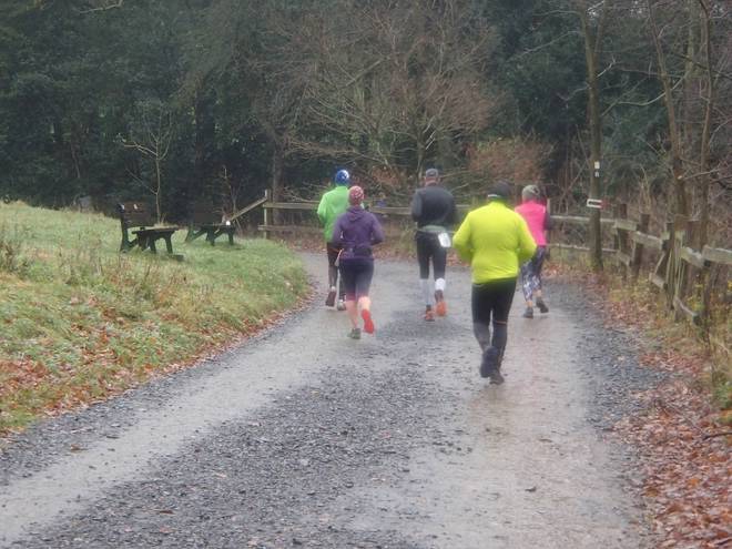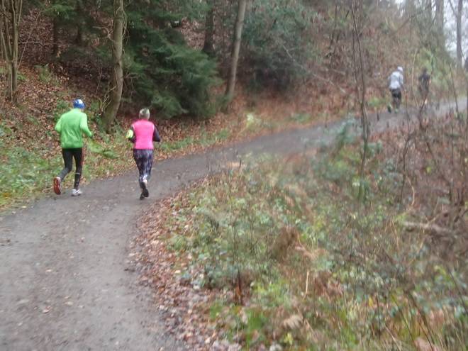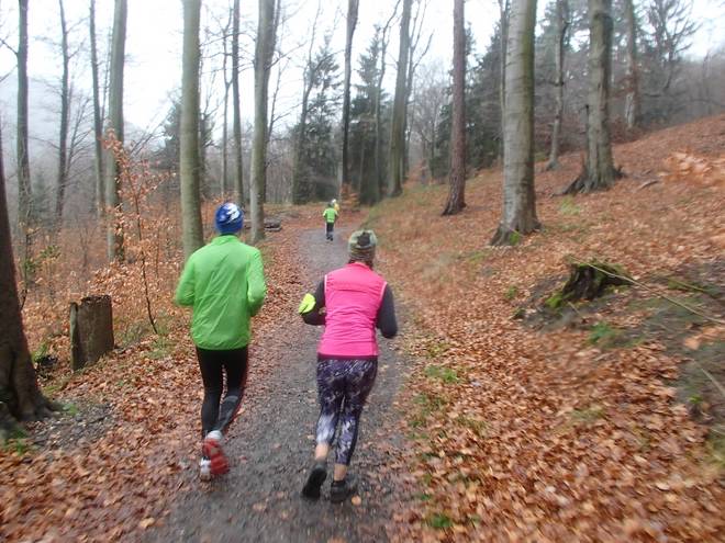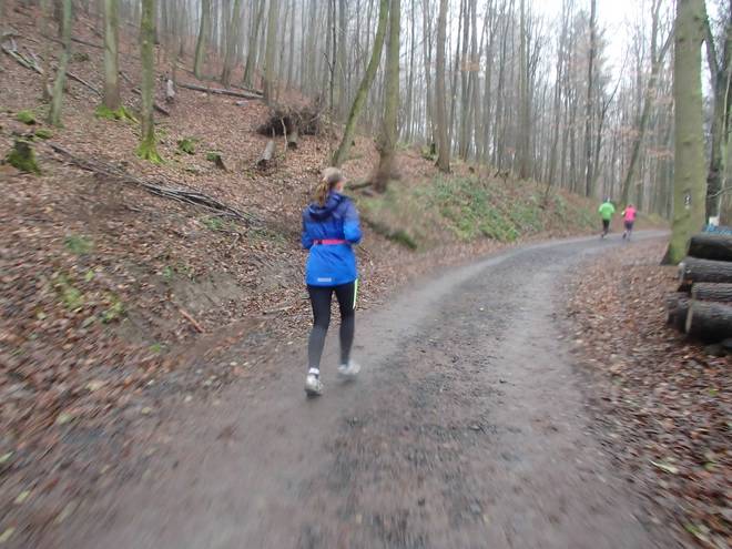 Im Schmelztal 10.25 Uhr / Km 4,0 Bettina war mal wieder an mir vorbeigerauscht. Und ja, es ist das Shirt vom Rennstieglauf 2014. |