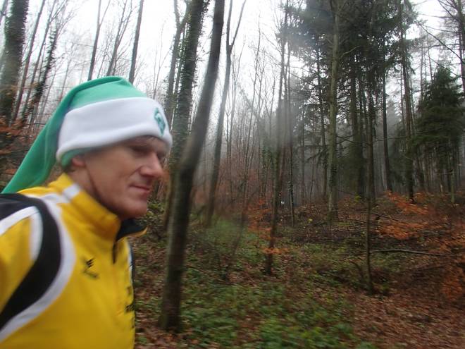 Gangpferdezentrum Peter-Staffel-Straße 10.01 Uhr / Km 0,02 2009 lief ich hier noch im Weihnachtsmann-Kostüm. Dieses Mal beließ ich es bei der Nikolaus-Mütze. In Werder-Bremen-Grün. Foto: Eventfotografie 24 |