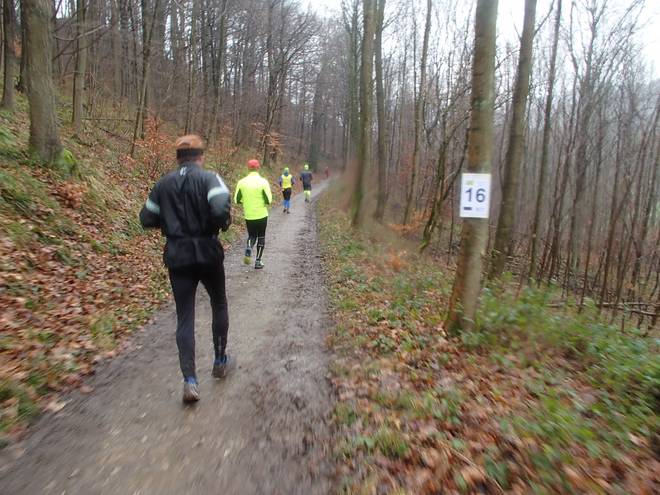 Stellweg 11.44 Uhr / Km 16,0 Nachfolgend ging es dann bergab. Und zwar auf genau derselben Strecke, die es zuvor zwischen Kilometer 5,6 und 8,8 bergauf gegangen war. |