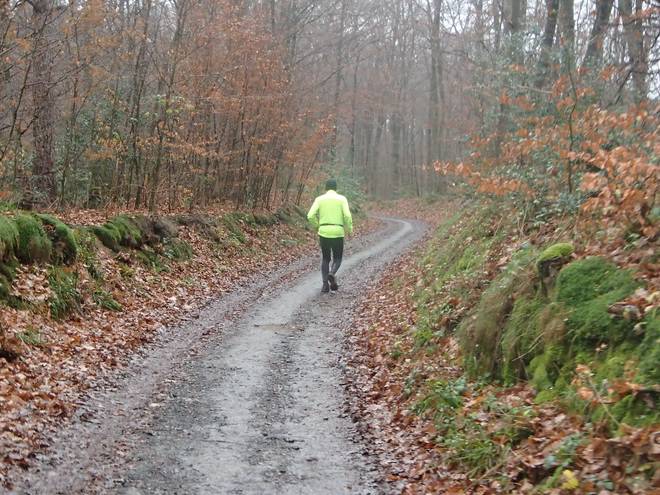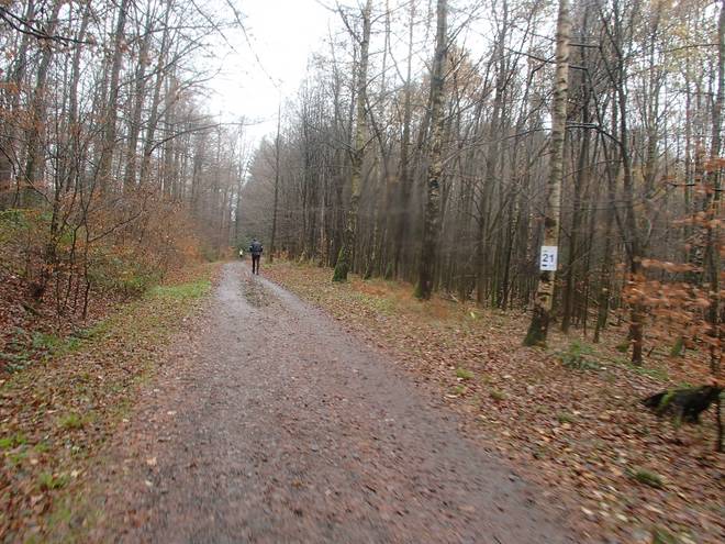 Mucherwiesenweg 12.39 Uhr / Km 24,0 Vorsicht rutschig. Nasses Laub auf Asphalt ist nicht nur für Autos und Fahrräder eine Gefahr. Auch als Läufer sollte man vorsichtig sein. Ist aber nichts passiert. |