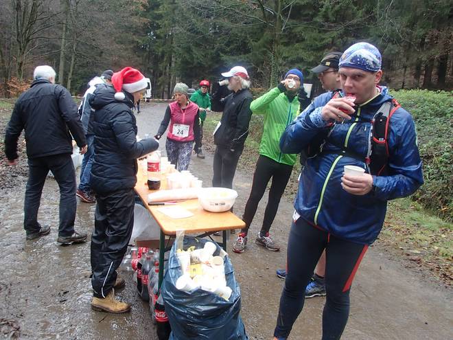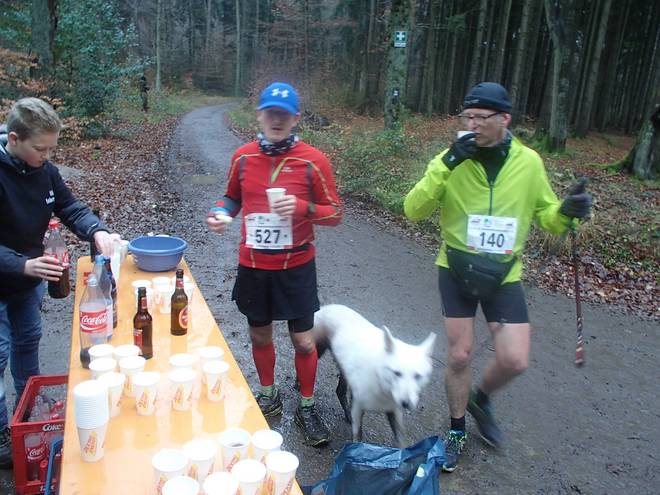 Asberg 13.41 Uhr / Km 33,2 Verpflegungsstand Nummer 7. Jetzt noch einmal kräftig getrunken und weiter ging es. |