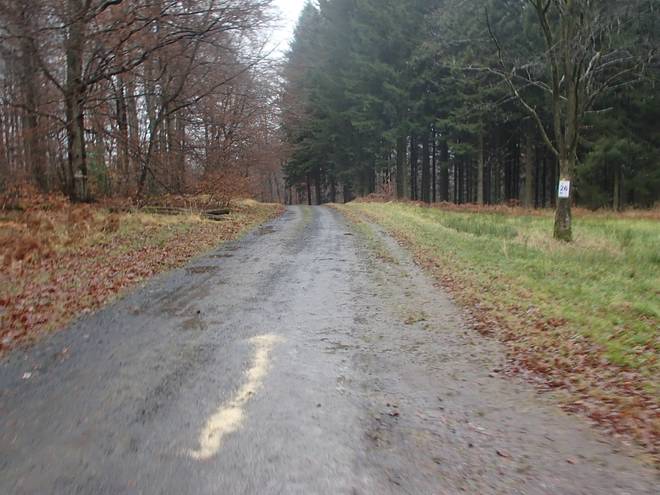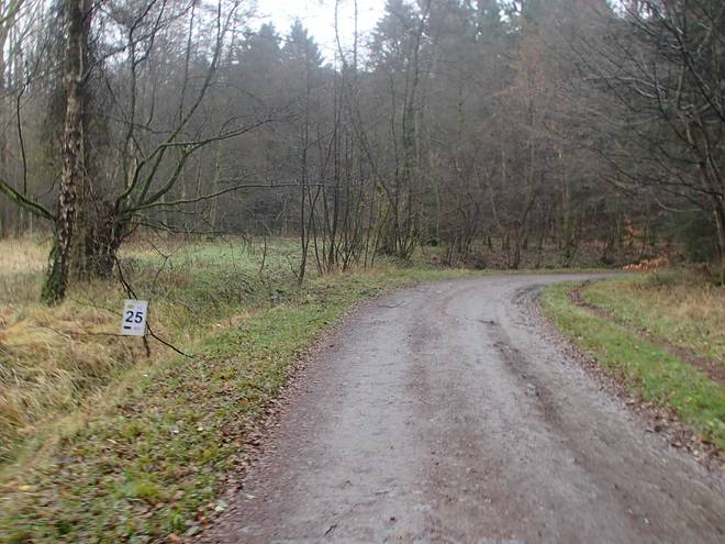 Leyberg 12.54 Uhr / Km 26,0 Nun ging es um den Leyberg herum. ´Das war zwar auch noch recht wellig, aber nicht mehr so fordernd wie die Strecke zuvor. |