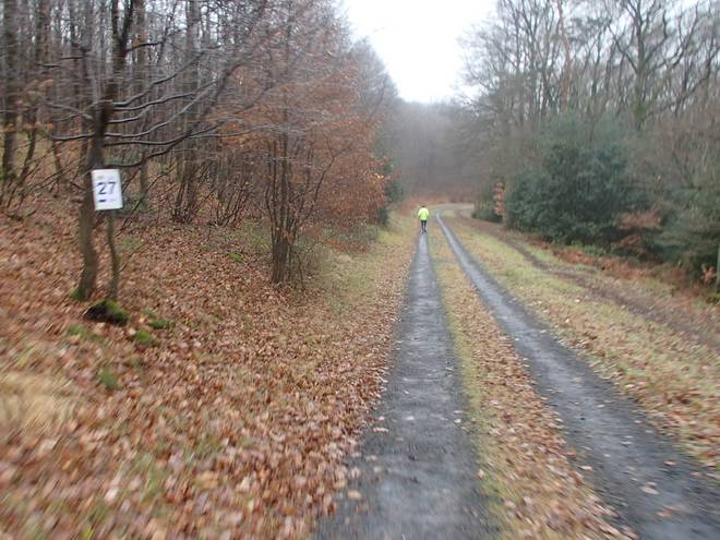 Am Stensbach 12.26 Uhr / Km 22,0 Fortan wellte sich der Kurs durchs Siebengebirge. Immer wieder etliche Meter rauf und wieder runter. |