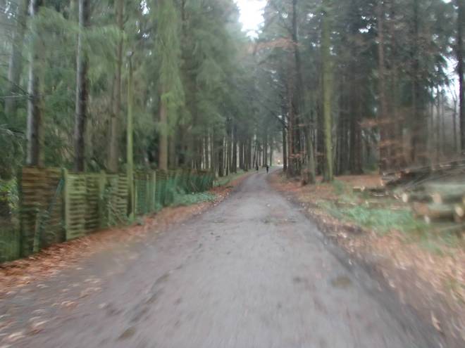 Asberg 14.05 Uhr / Km 37,0 Mehr und mehr nahm ich nun Fahrt auf. Da mußte ich schon aufpassen, nicht aus der Bahn zu kommen, denn der Boden war stellenweise doch recht rutschig. |