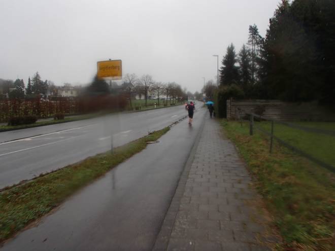Stellweg 14.08 Uhr / Km 37,6 Nun kam der Regen zurück. Das störte zwar nicht so sehr beim Laufen, aber für die Kamera war das so wie ein Knock-out. |