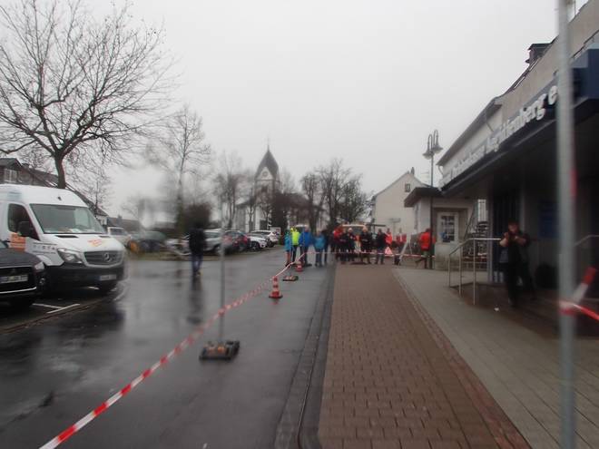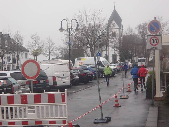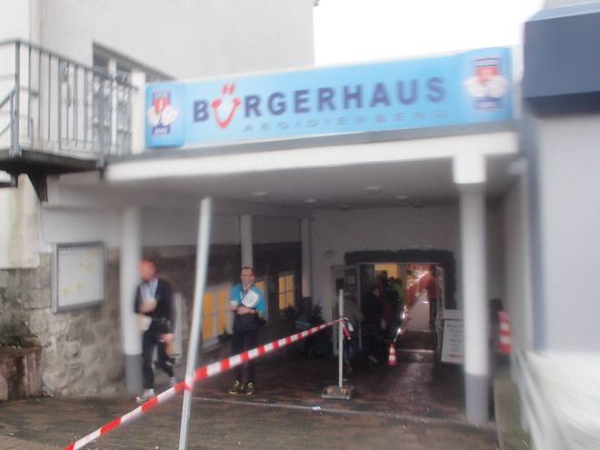 Aegidiusplatz 14.29 Uhr / Km 42,16 ... und rein ins Bürgerhaus Aegidienberg. |
