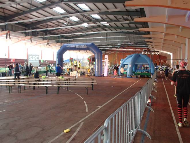 Niederlausitzhalle 07.54 Uhr Somit war ich bereit für den dritten und letzten Lauf des Wochenendes. Die 50 Kilometer. |