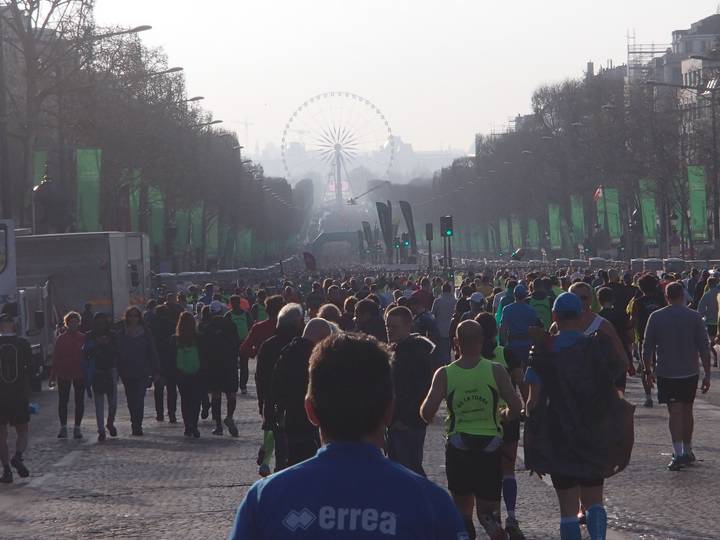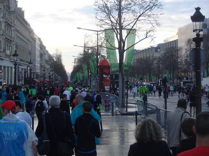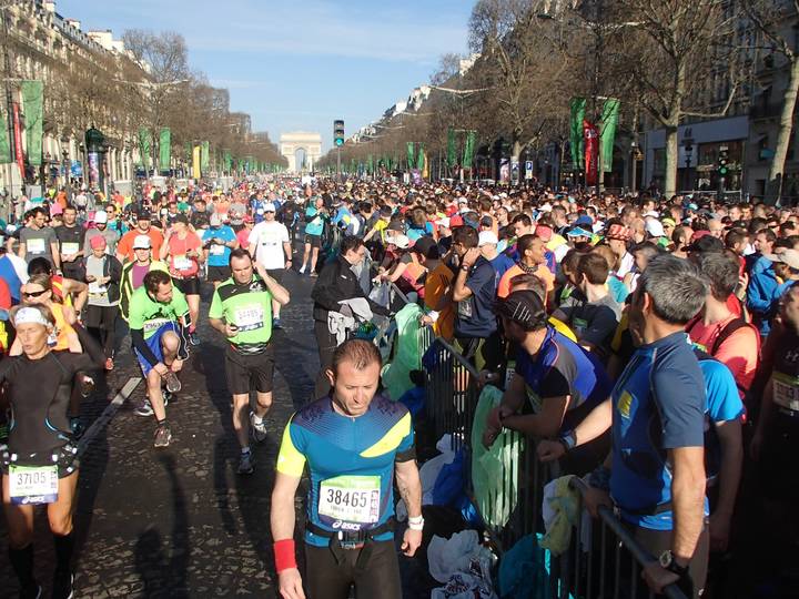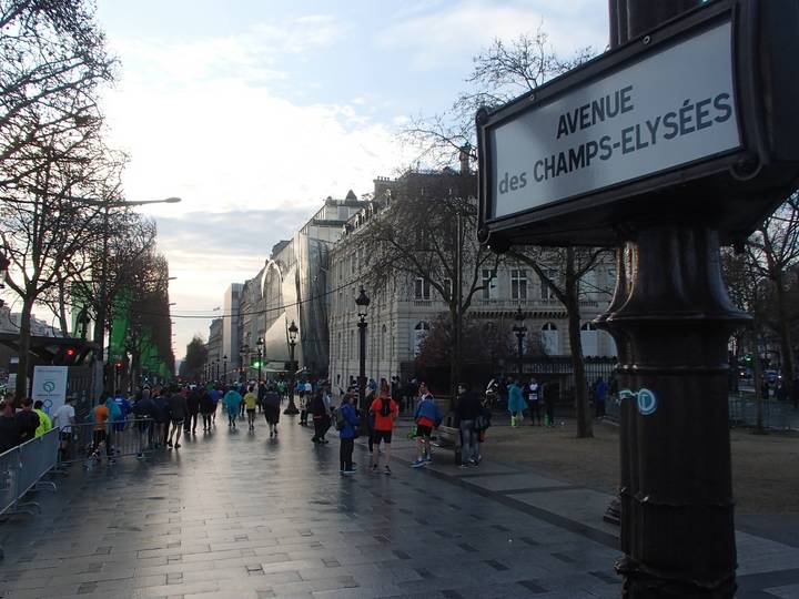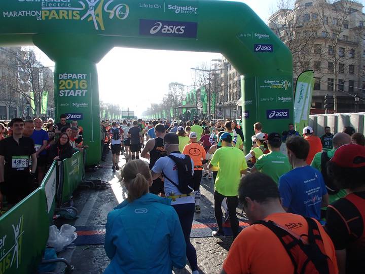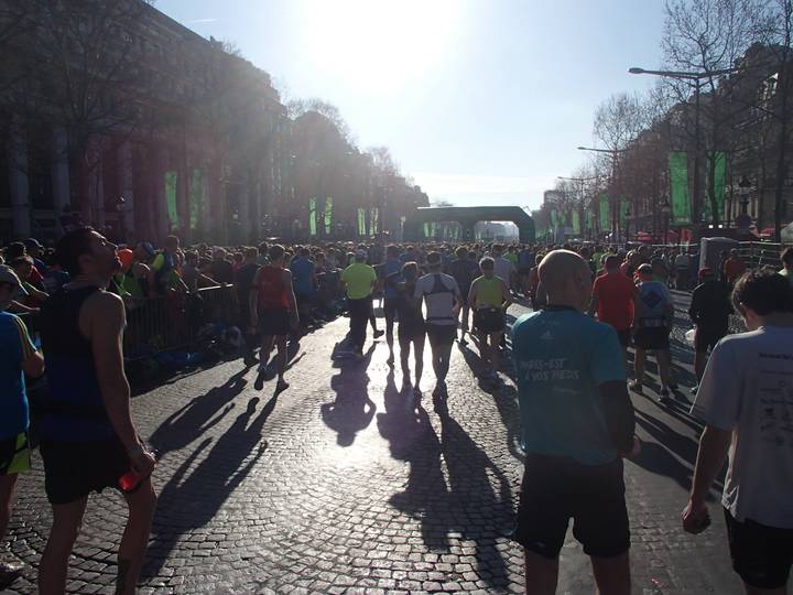 Avenue des Champs-Élysées 9.29 Uhr Neun Minuten nach dem Start meines Startblocks und 39 Minuten nach der Elite kam nun auch ich über die Start-Matte. Dann konnte das Abenteuer ja starten. |