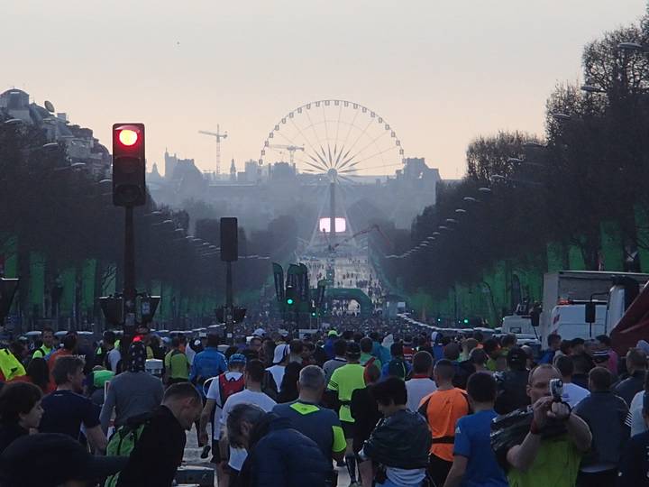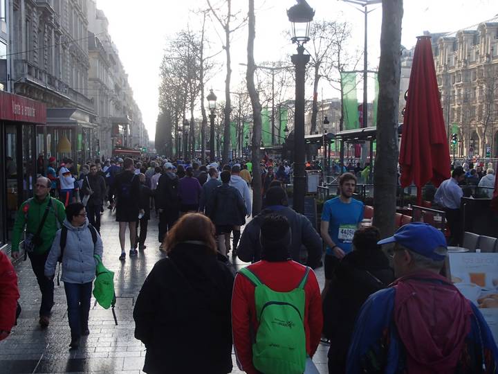 Avenue des Champs-Élysées 8.16 Uhr Die Avenue des Champs-Élysées war schon voll mit Läufern. |