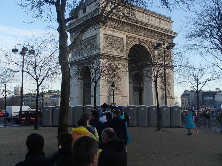 Avenue des Champs-Élysées 9.15 Uhr Getränke schon vor dem Marathon gibt es nur sehr selten, aber im Startblock gab es Toiletten. Das nenne ich guter Service. Auf ein Foto davon habe ich aber verzichtet. |