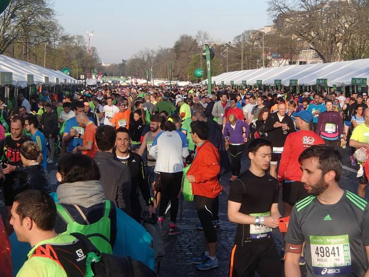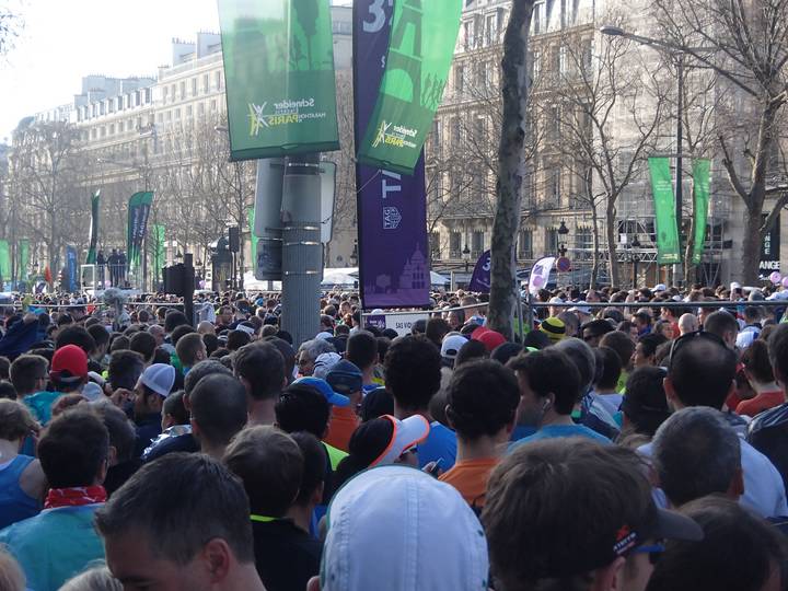 Avenue des Champs-Élysées 9.07 Uhr In den Startblock hinein zu kommen dauerte dann so seine Zeit. Aber immerhin wurde das Tor nicht um 9.00 Uhr dicht gemacht. |