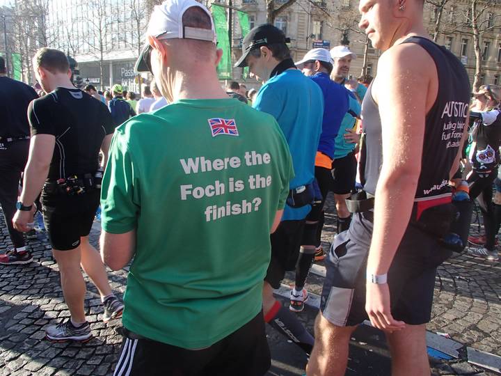 Avenue des Champs-Élysées 8.15 Uhr 1,1 Kilo hatte ich am Vortag abgenommen. Sonst nehme ich eher 1,0 bis 1,5 Kilo am Tag vor dem Marathon zu. Warum habe ich auch nicht aus dem Lebensmittel-Debakel von Médoc 2014 gelernt und mir alles von zu Hause mitgebracht?? |