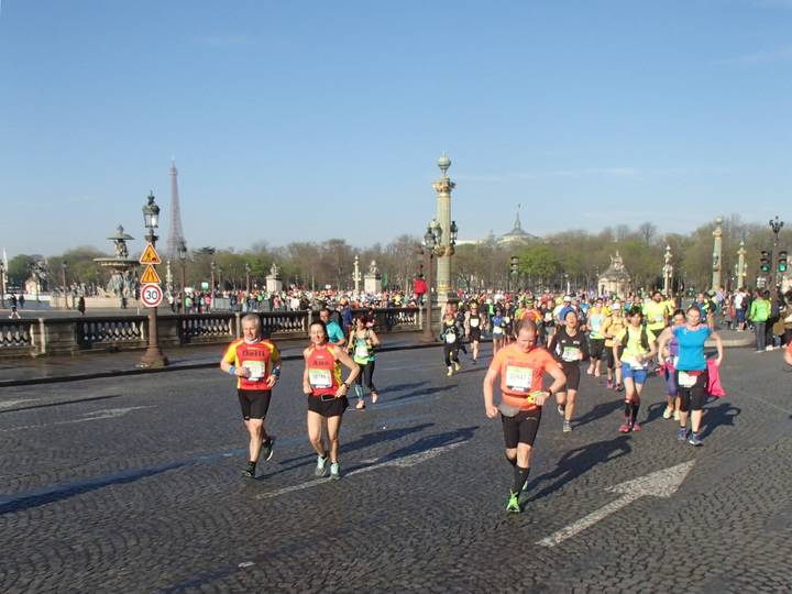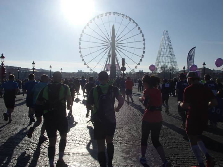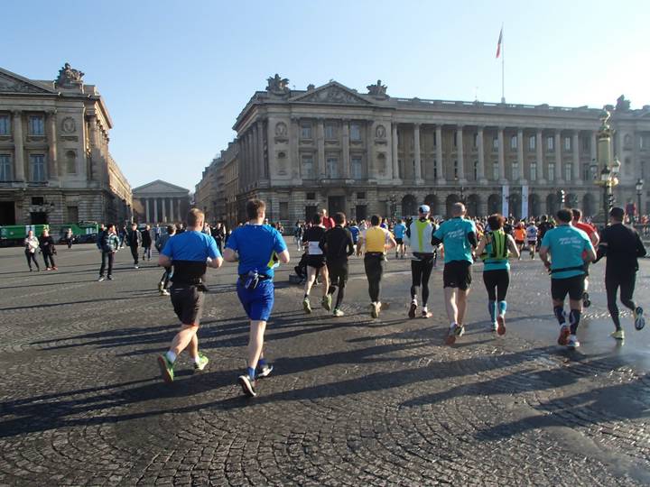 Place de la Concorde 9.36 Uhr / Km 1,3 Auch hier war schön viel Platz zum Laufen. Hätte ich nicht so viel fotografiert wäre ich bestimmt noch viel besser über die ersten Kilometer gekommen. |