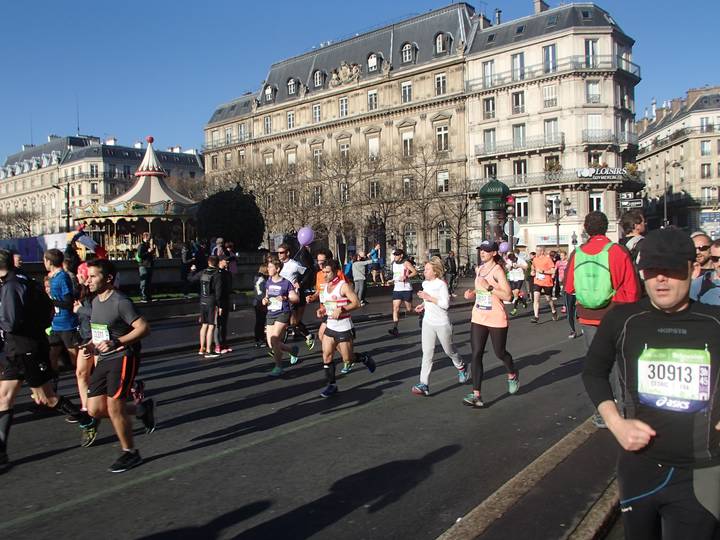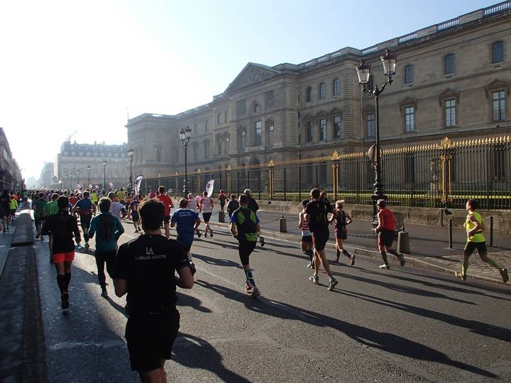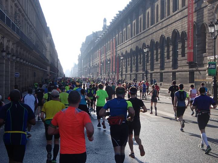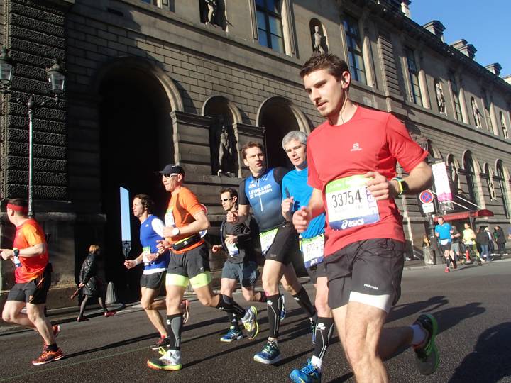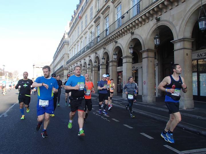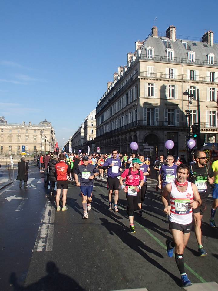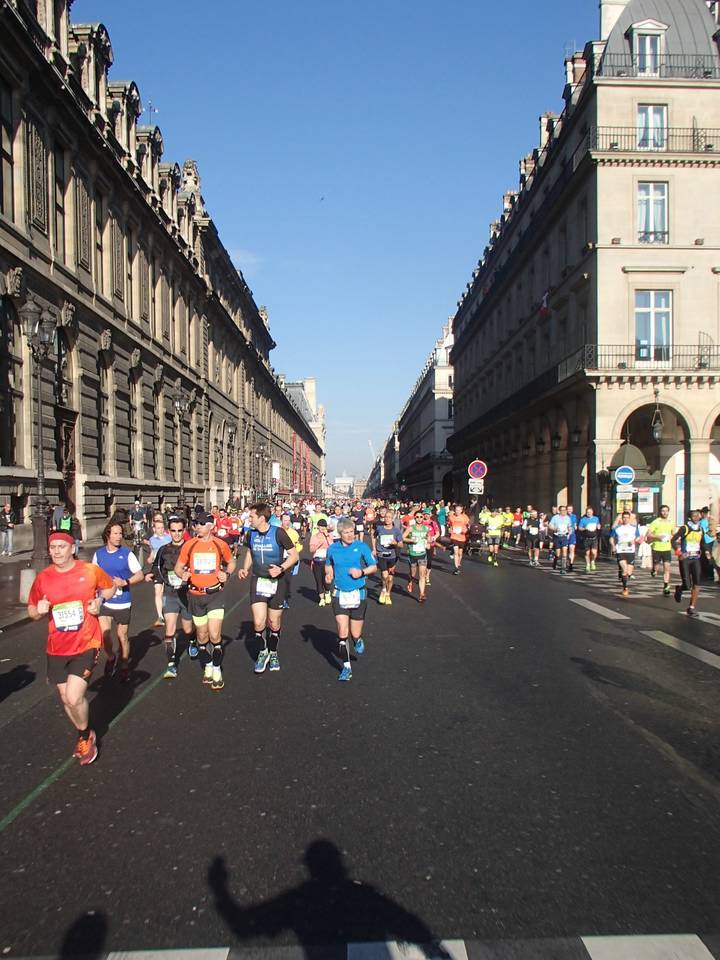 Rue de Rivoli 9.46 Uhr / Km 3,0 Allmählich wurde es etwas voller auf der Strecke. Und ich machte immer noch Foto um Foto. |