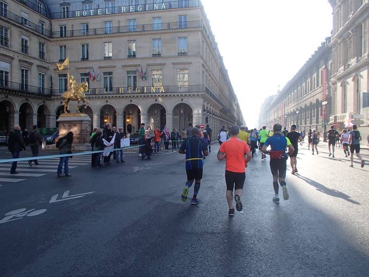 Rue de Rivoli Hotel Regina Jeanne D'Arc Statue 9.40 Uhr / Km 2,0 Die Sehenswürdigkeiten lagen weiterhin dicht an dicht, aber nicht mehr ganz so wie noch auf der Avenue des Champs-Élysées. |