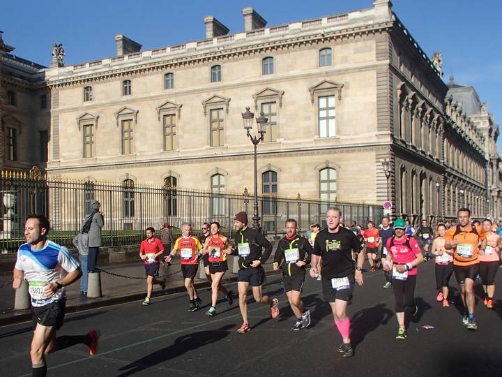 Rue de Rivoli Musée du Louvre 9.42 Uhr / Km 2,3 Da drin könnte man auch einen Marathon laufen. Das Museum ist groß genug. Da könnten 100 Läufer einen Marathon laufen, ohne sich dabei auch nur einmal zu begegnen. Jaja... ich war da 2014 drin. Den ganzen Tag. Keine Ahnung, wie viel ich da geschafft habe. |