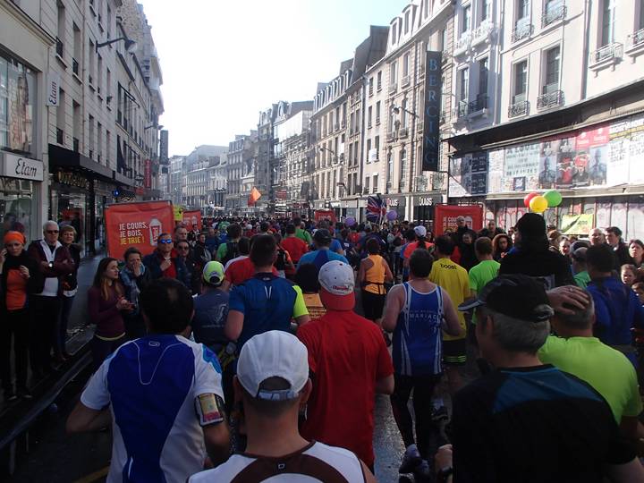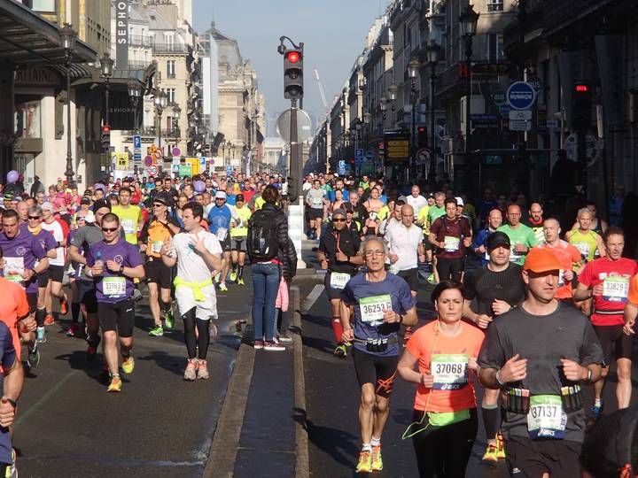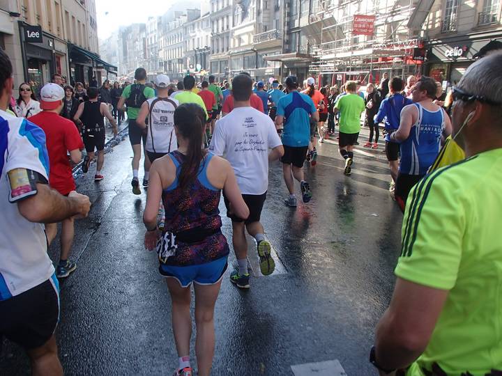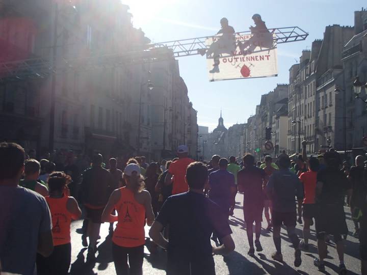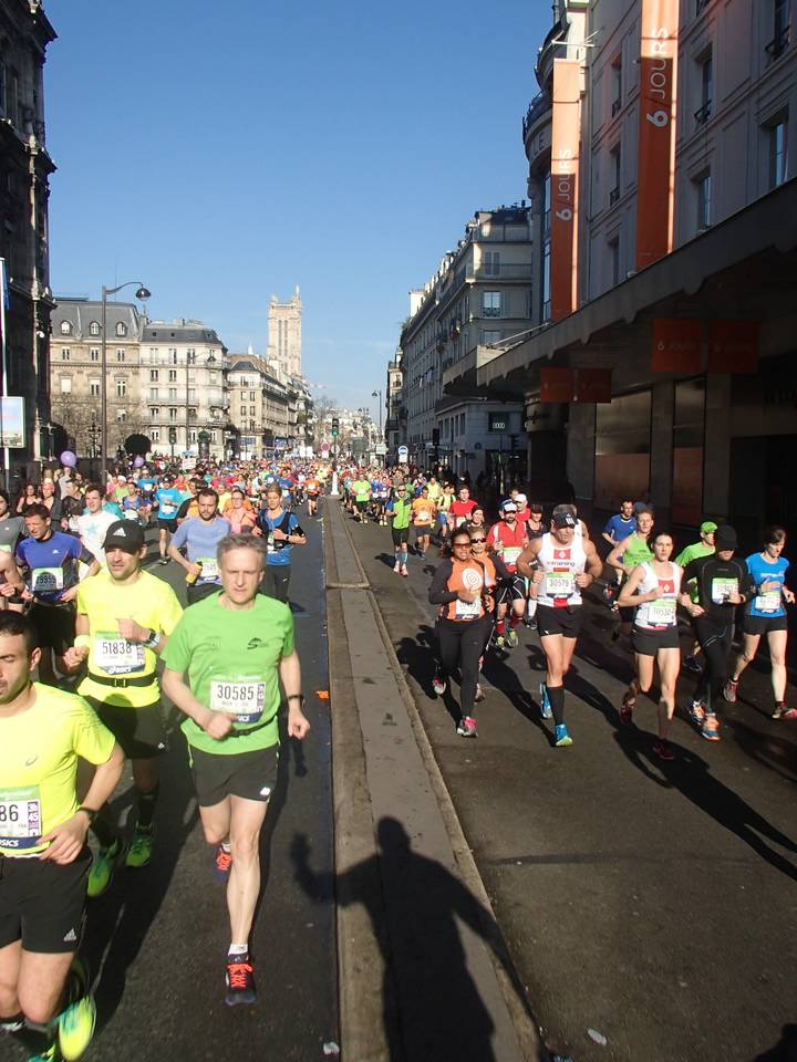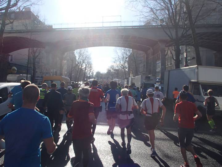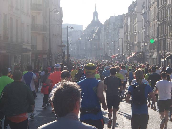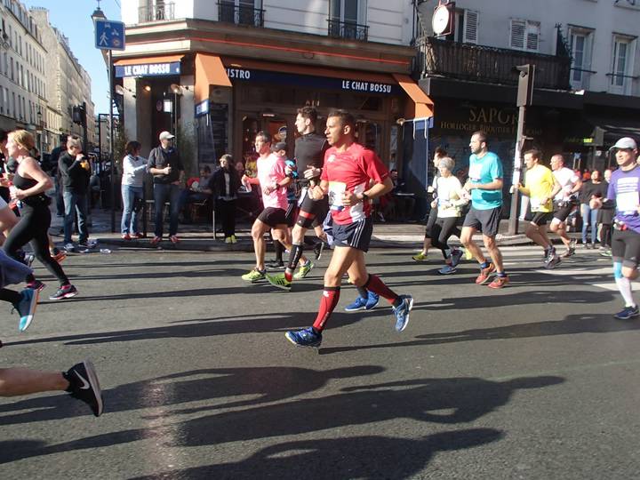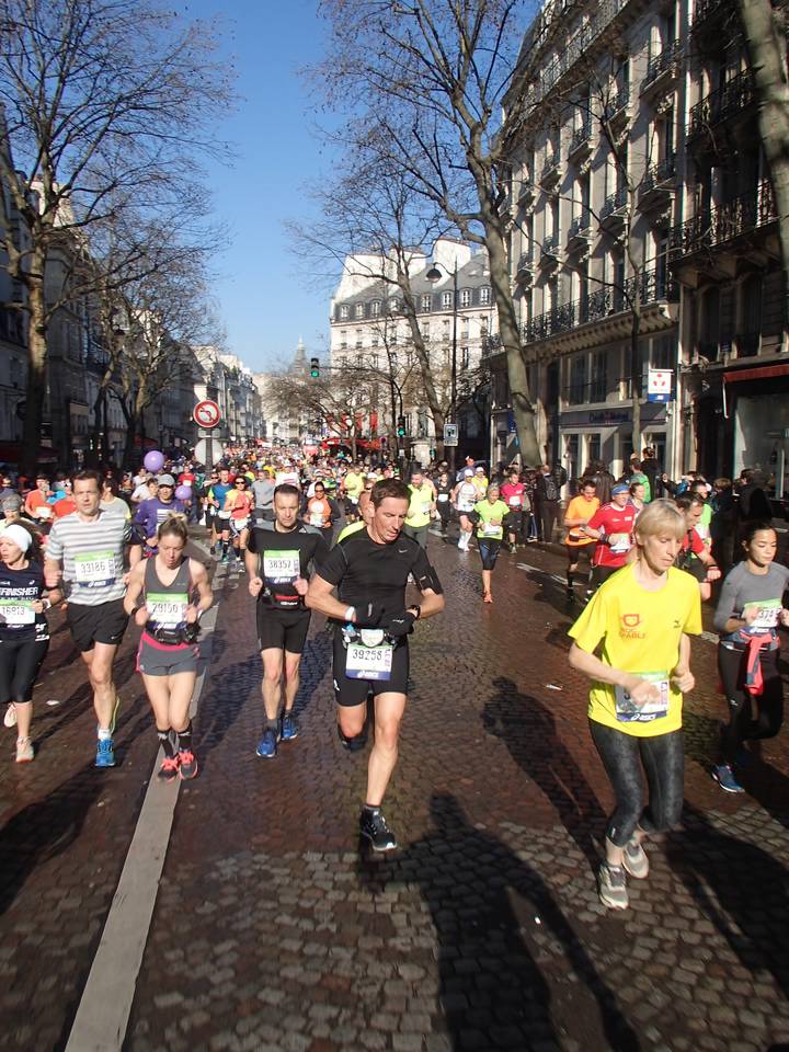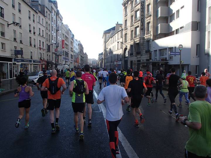 Rue du Faubourg Saint-Antoine 9.58 Uhr / Km 5,3 Auf der Strecke wurde es noch enger. Erstmals war es mit dem freien Laufen vorbei. |