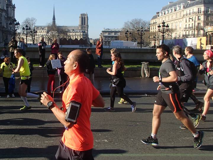 Rue de Rivoli Parvis de l'hôtel de ville Cathédrale Notre-Dame de Paris 9.49 Uhr / Km 3,7 Manch Sehenswürdiges war nur kurz zwischen Häusern zu sehen. Da war es doch gut, sich vorher schon über die Standorte schlau zu machen. |