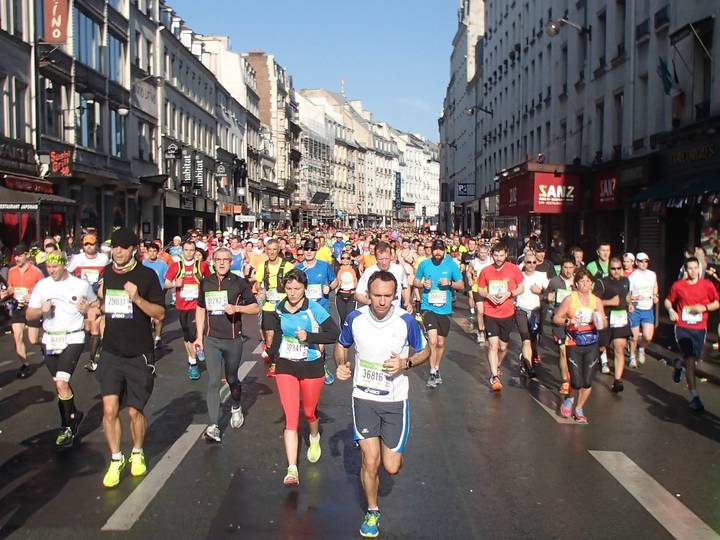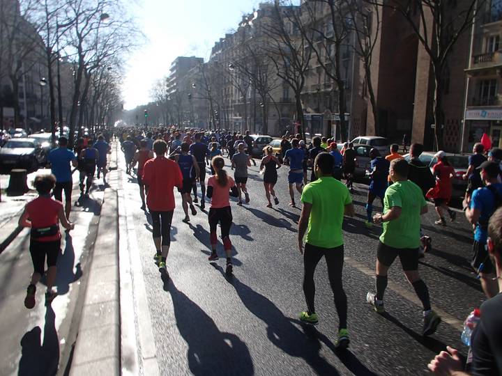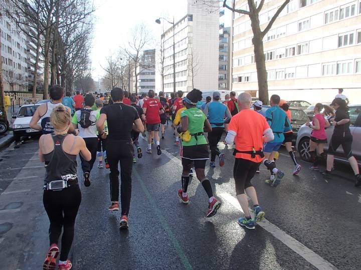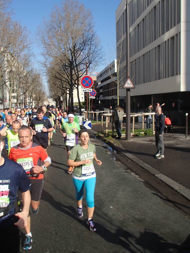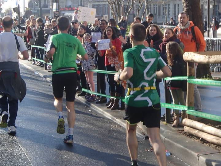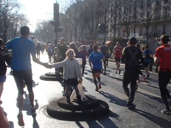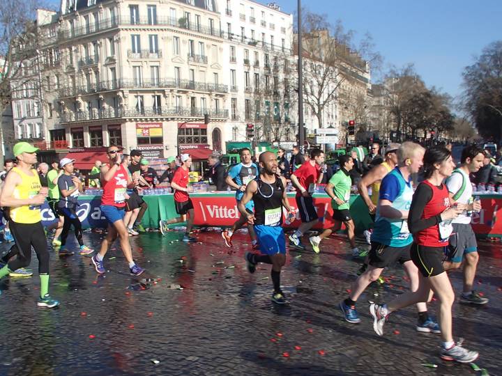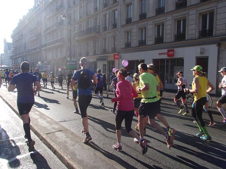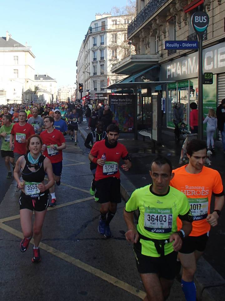 Rue de Reuilly 10.11 Uhr / Km 7,7 Zuschauer gab es meist geballt. Entweder man lief alleine oder an einer ganzen Reihe Zuschauer vorbei. Die waren richtig gut drauf. |