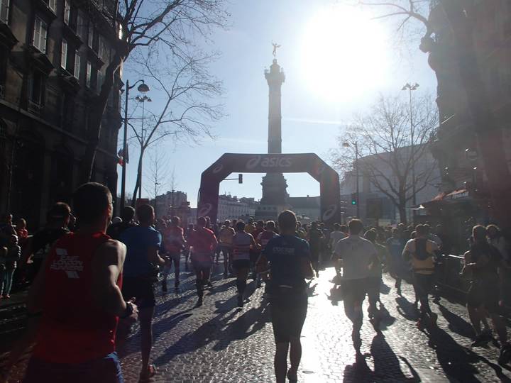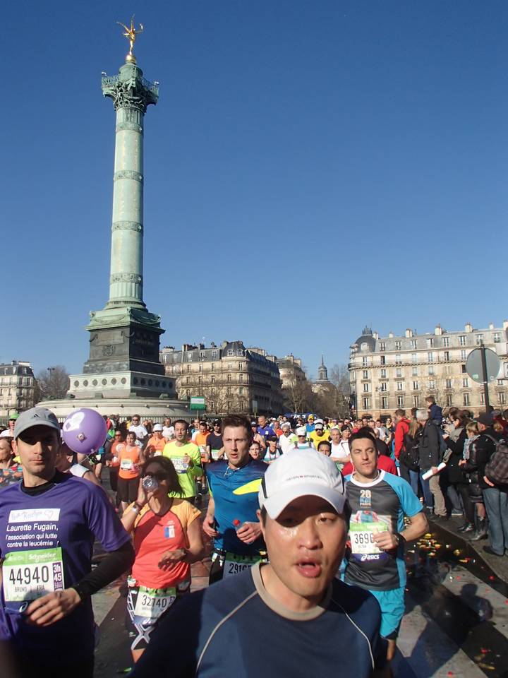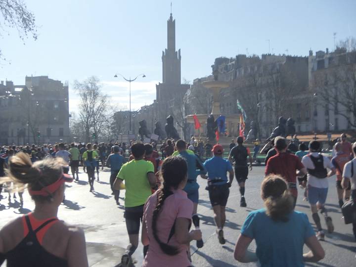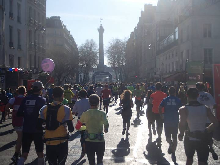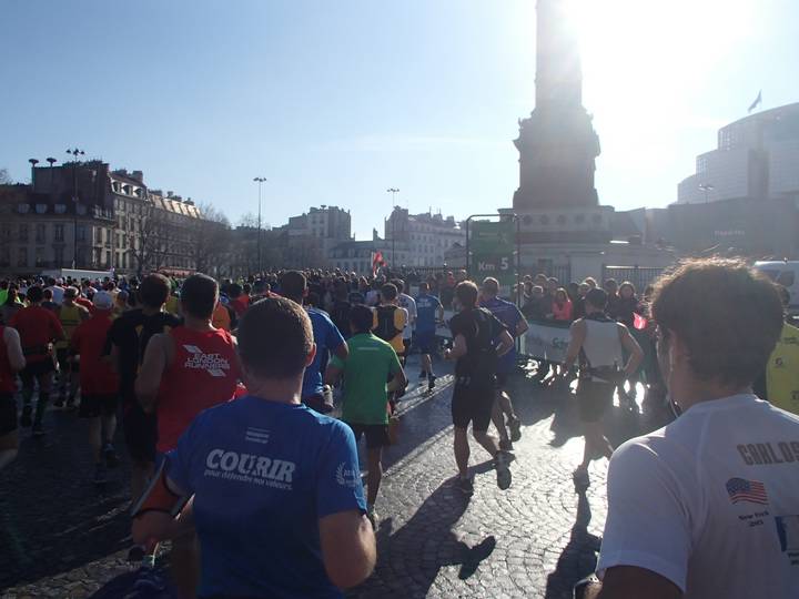 Place de la Bastille 9.56 Uhr / Km 5,0 27:47 Minuten für die ersten fünf Kilometer. Das kam dem Plan vier Stunden recht nahe. |