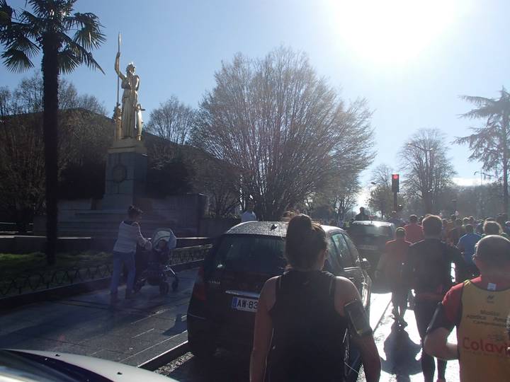 Porte Dorée Place Edouard Renard Statue d’Athéna 10.17 Uhr / Km 8,7 Warum der nicht sehr große Platz gleich zwei Namen hat weiß ich auch nicht. |