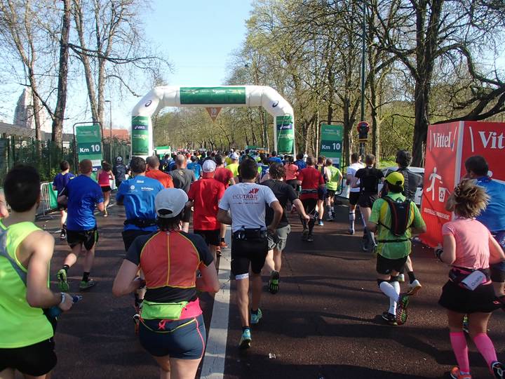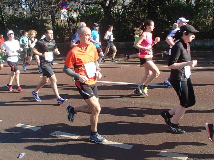 Avenue de Saint-Maurice Bois de Vincennes 10.25 Uhr / Km 10,0 56:27 Minuten nach zehn Kilometern. Also 28:40 Minuten für die zweiten fünf Kilometer. Das war zwar etwas langsamer als zuvor, aber da war auch eine Pinkelpause drin. Also noch im Plan, wenn auch knapp. |