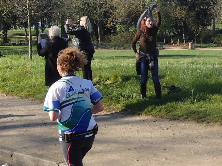 Route de Ceinture du Lac Daumesnil Bois de Vincennes 10.24 Uhr / Km 9,8 Hier gab es zwar fast keine Zuschauer, aber dafür eine ganz begeisterte. |