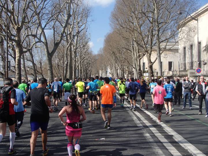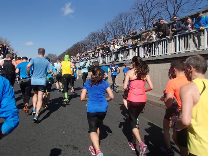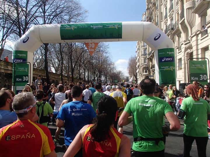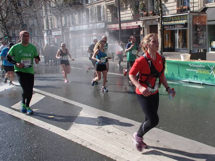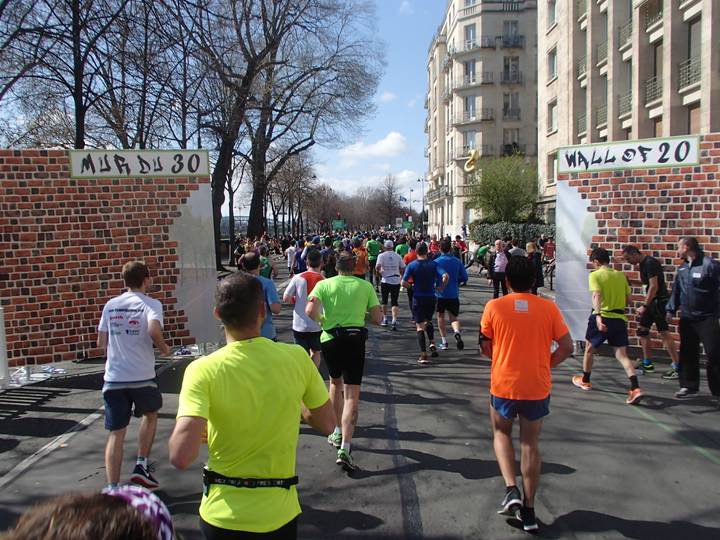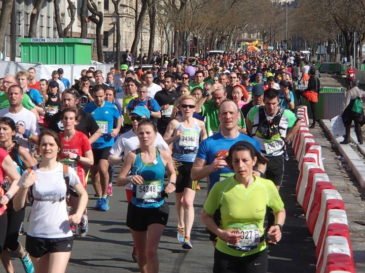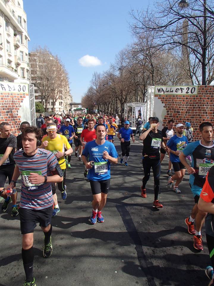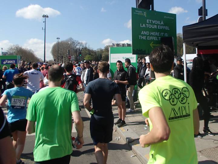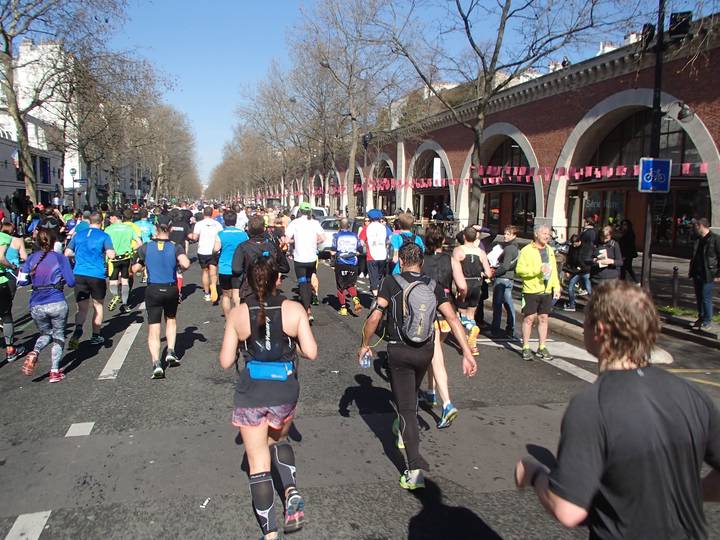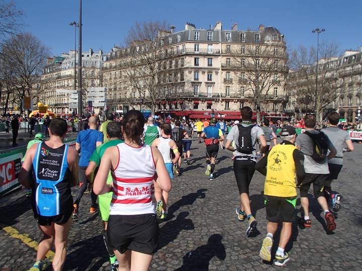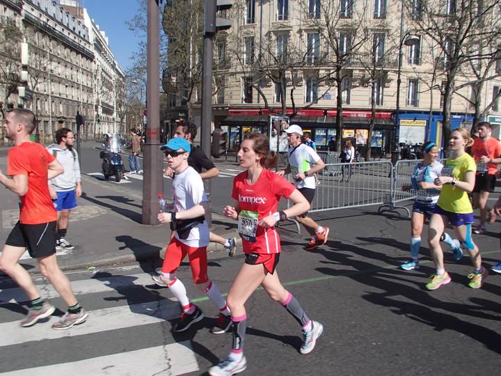 Boulevard Bourdon 11.38 Uhr / Km 23,0 Das war schon eher das Bild, was sich einem bot: Läufer dicht an dicht. |