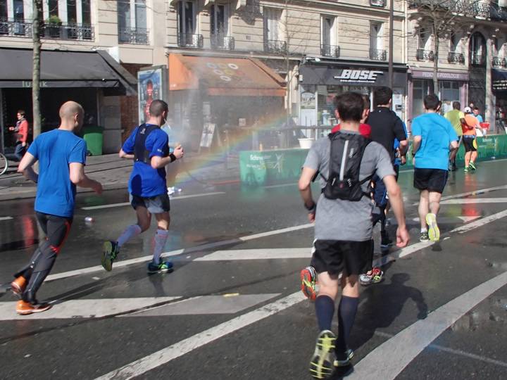 Rue de Lyon 11.33 Uhr / Km 22,1 Schön... Abkühlung. Und wieder den Moment mit dem Regenbogen erwischt. |