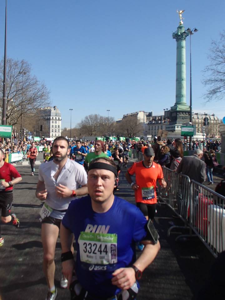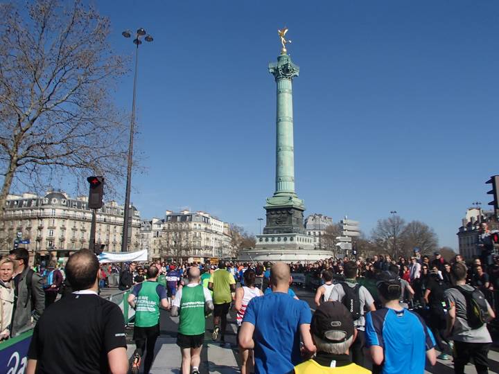 Place de la Bastille 11.35 Uhr / Km 22,4 Hier waren wir schon bei Kilometer 5 vorbei gelaufen. |