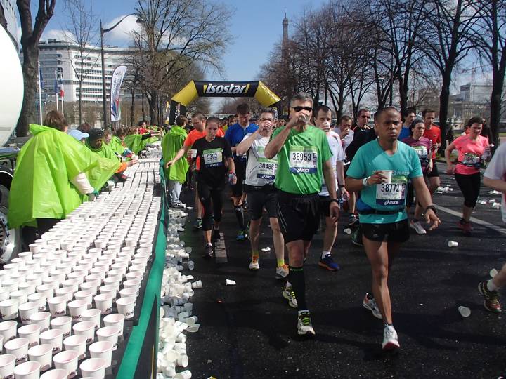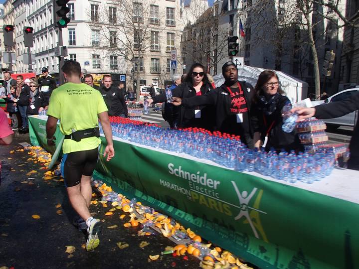 Avenue du Président Kennedy 12.27 Uhr / Km 30,7 Da haute ich mir doch gleich mal drei Becher von rein. Hier bekam man nämlich auch dann noch zu trinken, wenn man schon etwas in der Hand hatte. Nix mit "jeder Läufer nur eine Flasche". |