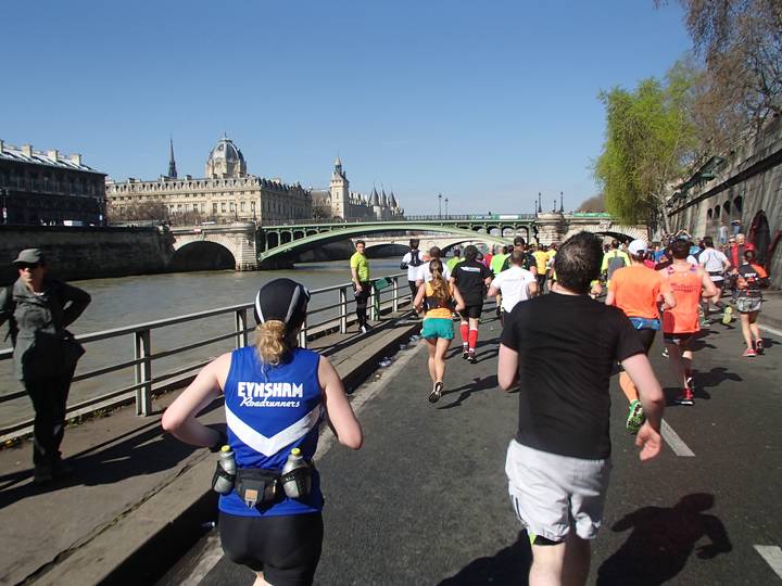 Quai Henri IV 11.43 Uhr / Km 23,8 Einen halben Kilometer weiter konnte man dann erstmals einen kurzen Blick auf das Wasser ergattern. |