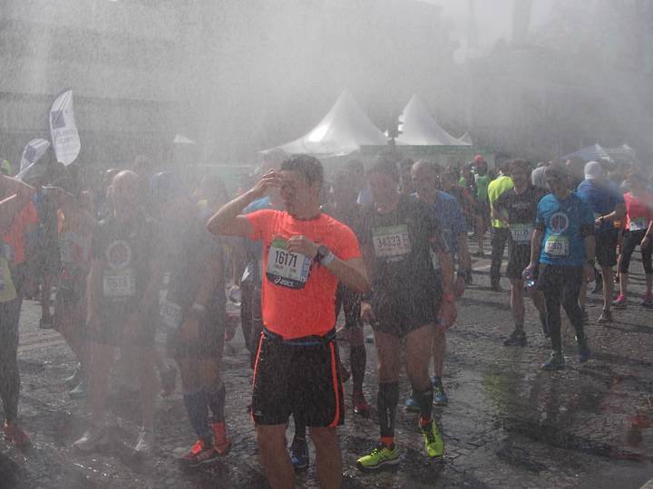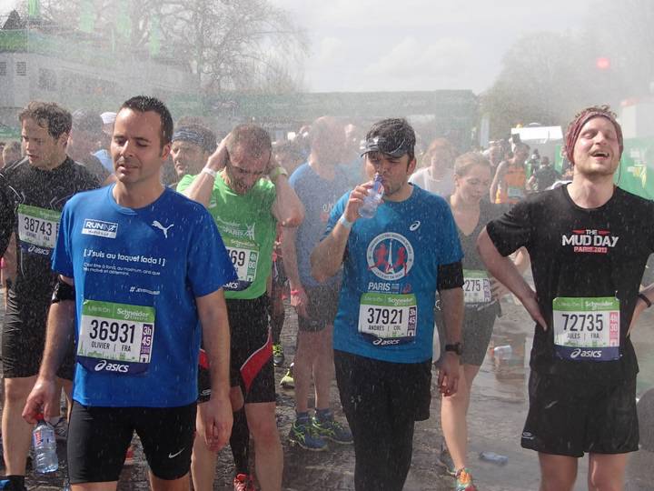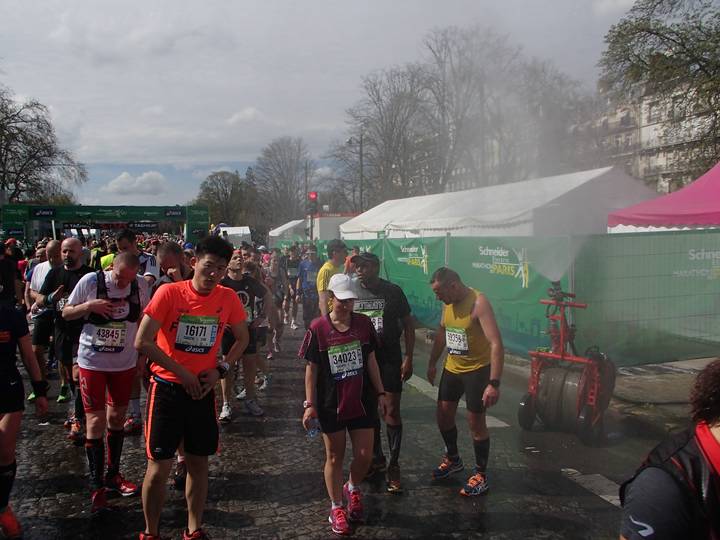 Avenue Foch 14.01 Uhr / Km 42,195 Nach dem Finish kam die kühle Dusche. Die hatte ich mir auch mehr als verdient. Und alle anderen auch. |