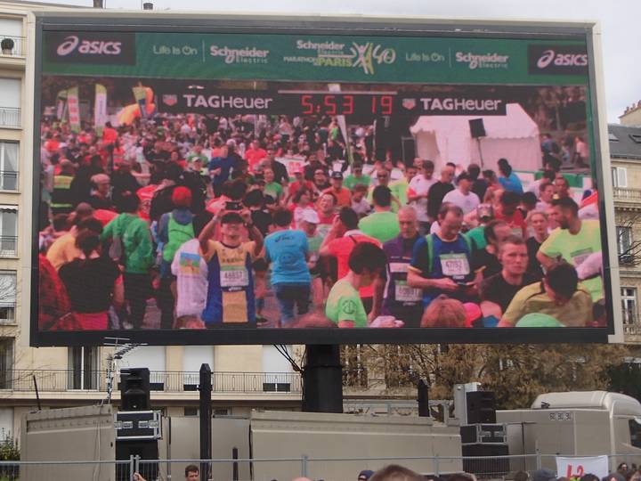 Avenue Foch 14.37 Uhr Die Bruttozeit oben ist beim Paris-Marathon wenig hilfreich. Die meisten Läufer hier dürften unter fünf Stunden netto im Ziel gewesen sein. |