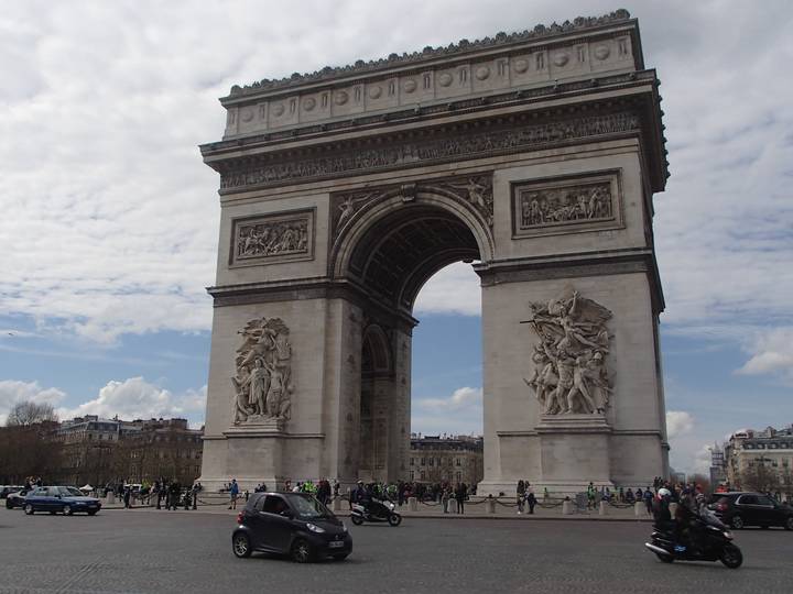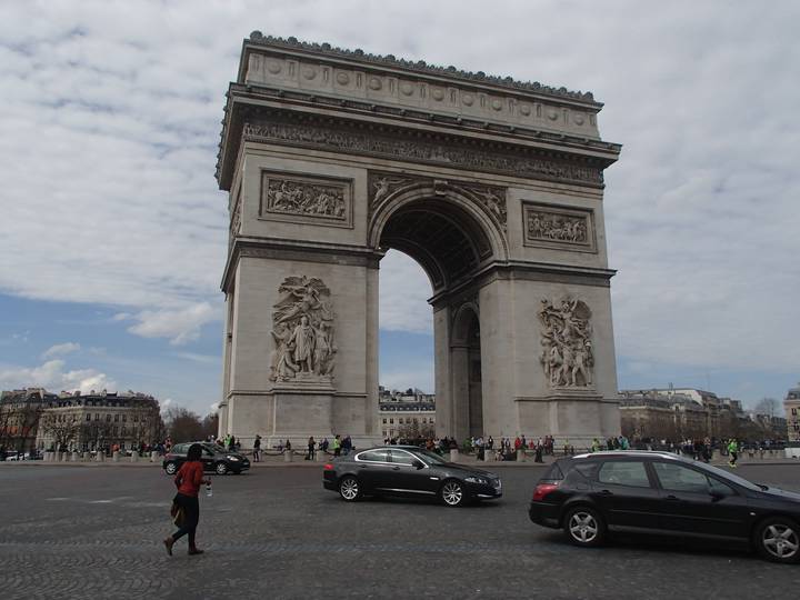 Place Charles de Gaulle Arc de Triomphe 14.46 Uhr Es dauerte eine Weile, bis ich die halbe Runde um den Place Charles de Gaulle geschafft hatte. Die Beine machten einen Sprint über die Straße nicht mit. Also mußte ich überall auf Grün warten. |