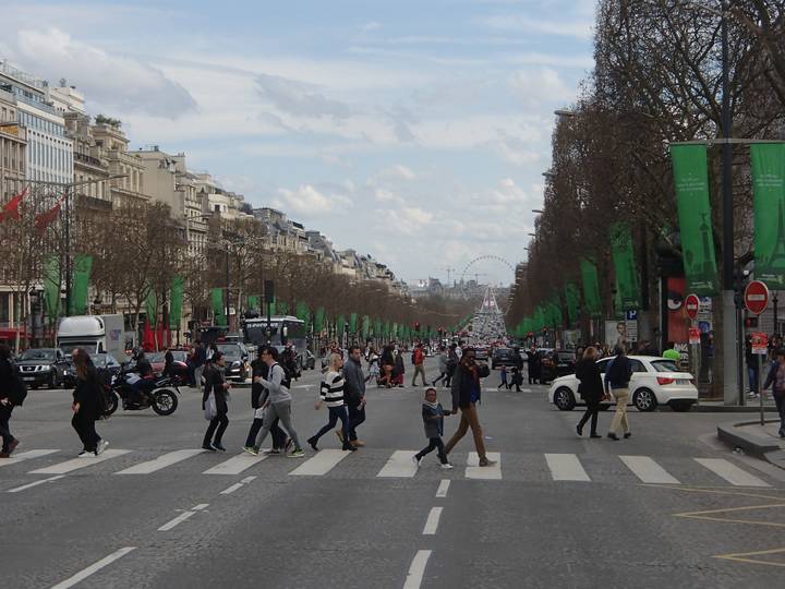 Avenue des Champs-Elysées 14.49 Uhr Hier herrschte immer noch derselbe Hochbetrieb wie sechseinhalb Stunden zuvor, als ich hier aus der Metro kam. |