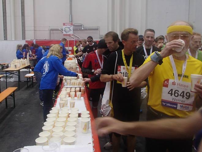 Karolinenstraße 12.40 Uhr / Km 42,195 Guck mal Cuxhaven. So geht das mit den Medaillen. Und guck mal Paris, wie schnell man sein kann, wenn man nur genug zu trinken bekommt. |