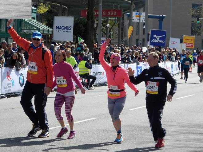 Karolinenstraße 13.57 Uhr Die Staffeln konnten sich 400 Meter vor dem Ziel treffen und dann zusammen ins Ziel laufen. |