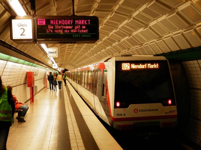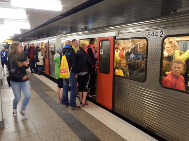 U-Bahn Messehallen 14.19 Uhr Je Wagon ein Aufpasser des HVV. Fahrgäste gab es nicht ganz so viele. Ob die alle zu Fuß gingen, nur weil die das Ticket hätten zahlen müssen? |