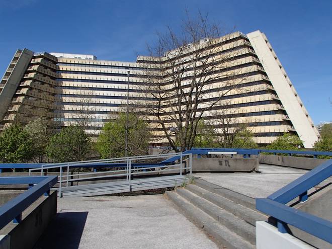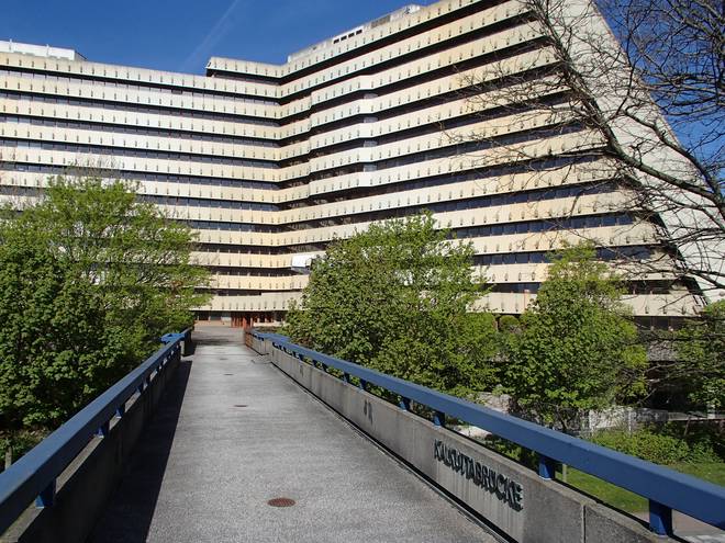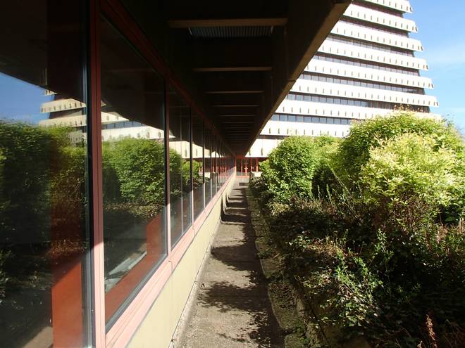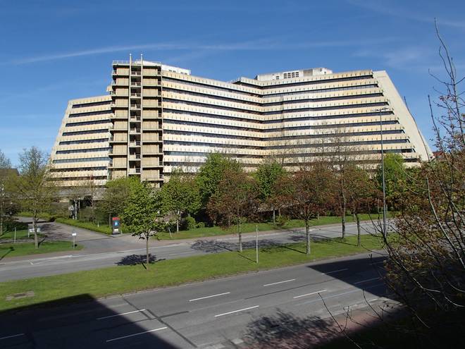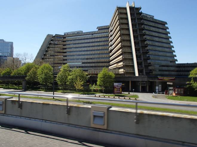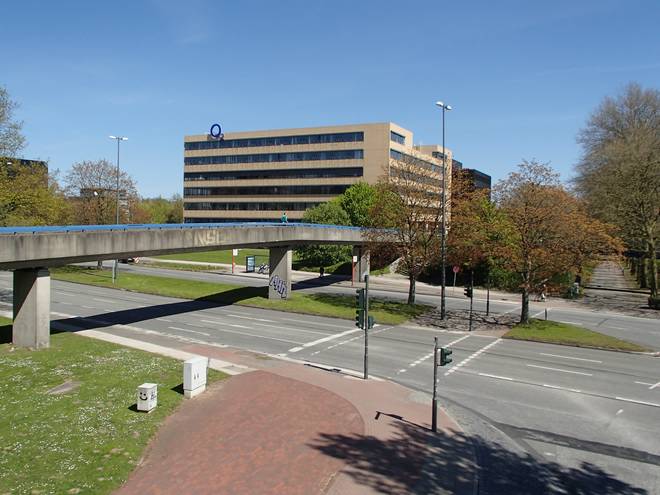 City Nord 9.47 Uhr Damit teilt das Gebäude das Schicksal anderer Gebäude der in den 60er und 70er Jahren hochgezogenen City Nord. |