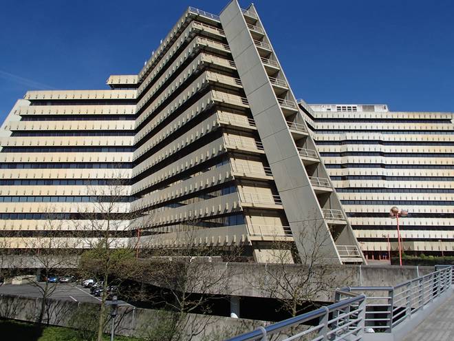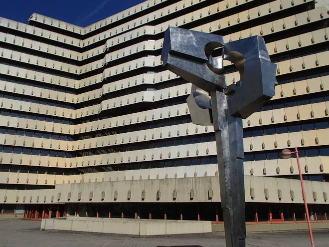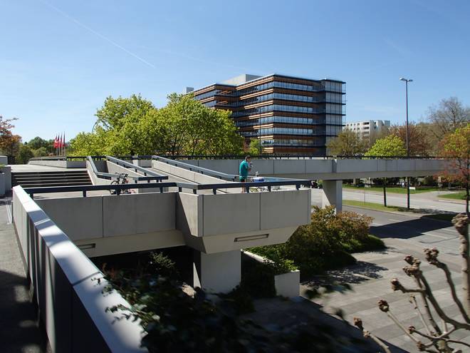 City Nord 9.45 Uhr Die Post-Pyramide ist die alte Oberpostdirektion. Von 1978 bis 2011. Nun soll das 1977 gebaute Gebäude demnächst abgerissen werden. |