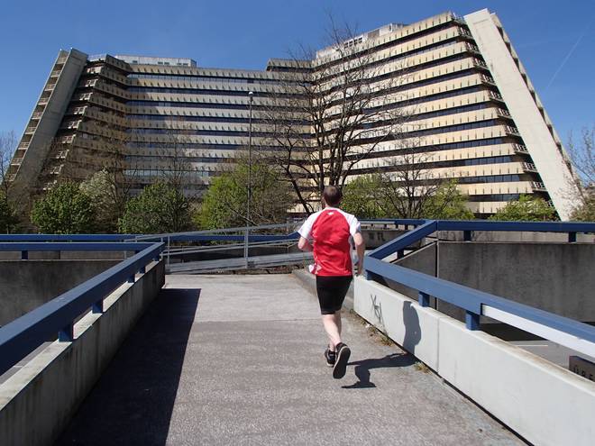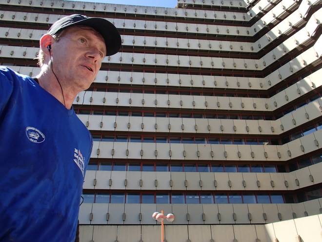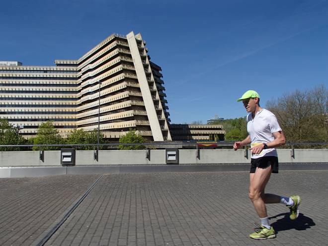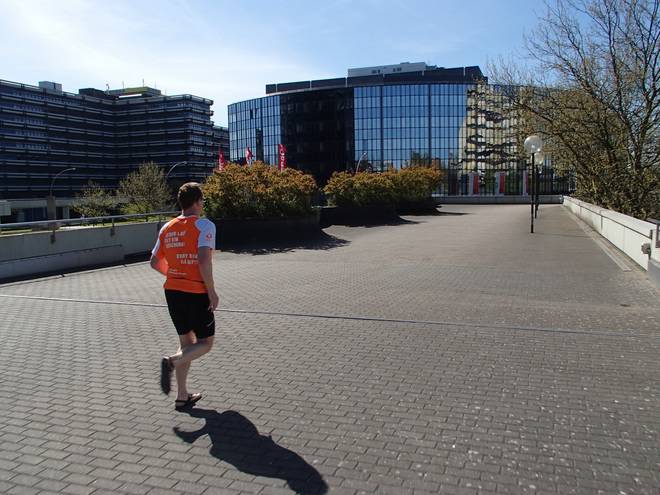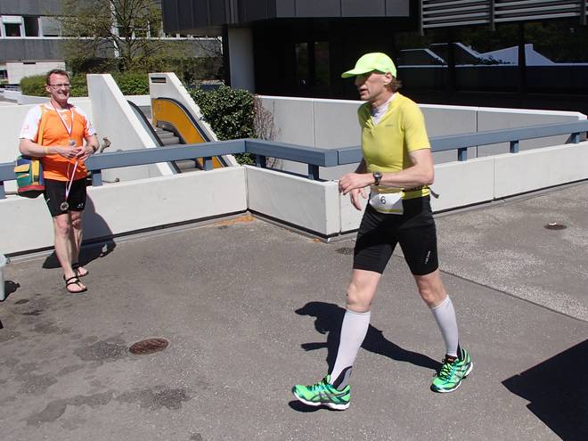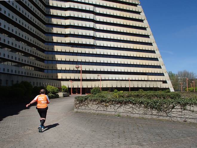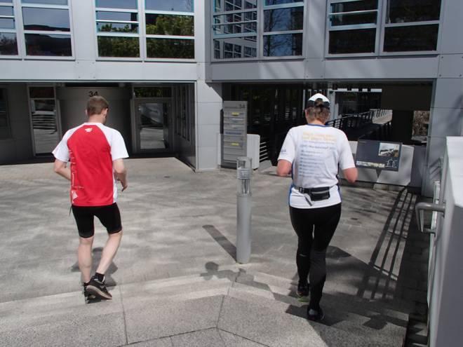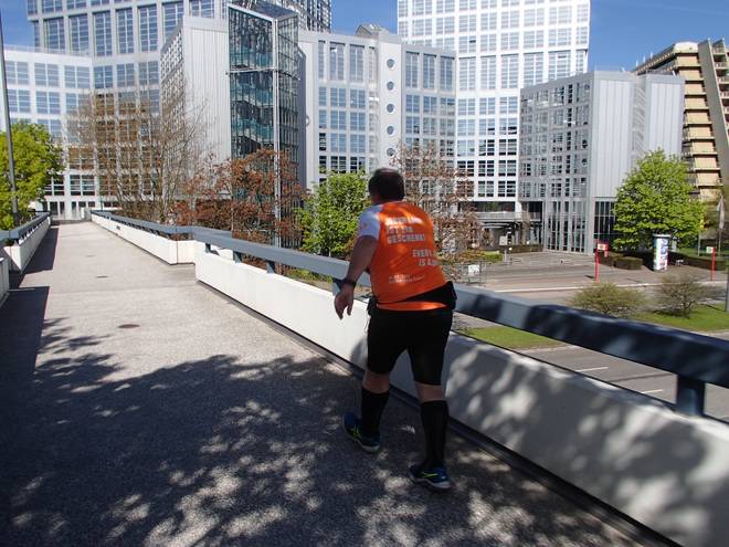 City Nord 14.32 Uhr Ob es eine zweite Auflage dieses Marathons geben wird, steht noch nicht fest. Christian bemüht sich aber darum, daß wir dann in dem Gebäude laufen können. Das hätte doch was. |