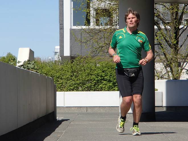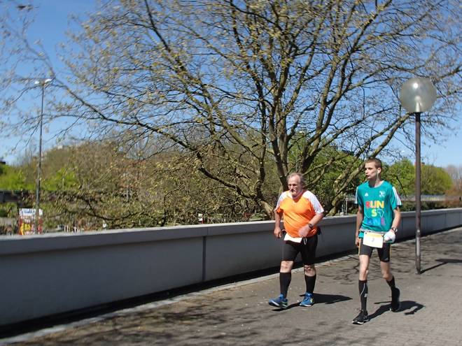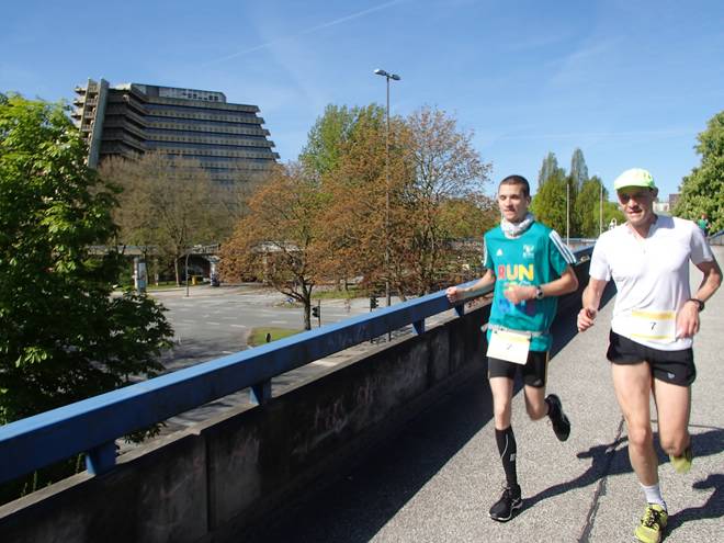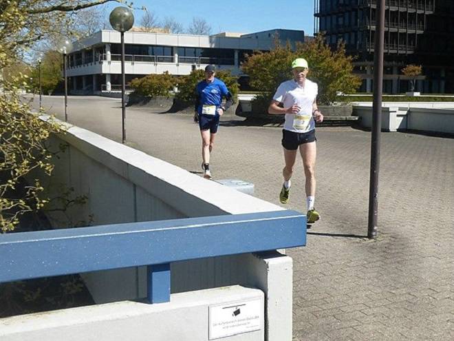 Runde 5 10.35 Uhr / Km 4,2 Zur Motivation überrundete mich zunächst Wolfgang (Foto zuvor) und dann auch Erik und Rico. |
