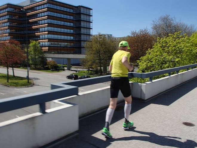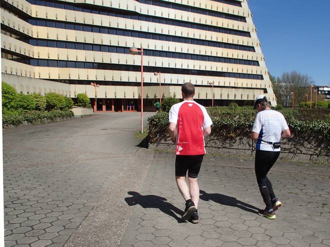 City Nord 14.31 Uhr Ein schöner Lauf war das. Nicht abwechslungsreich, aber gut zu laufen und bei dem Wetter machte selbst die Bürostadt Spaß. |