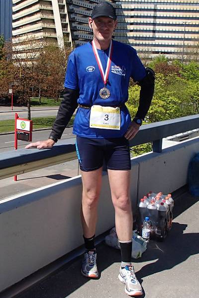 Finish 14.17 Uhr / Km 42,446 Nach einer 4:12-Minuten-Schlußrunde war ich nach insgesamt 3:57:58 Stunden in Ziel gewesen. So deutlich war das vier Runden vor Schluß nicht zu erwarten gewesen. Um so zufriedener war ich jetzt mit dem Ergebnis. |