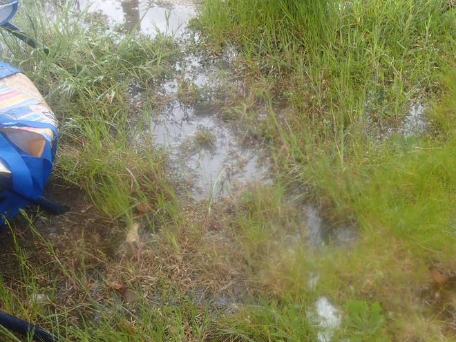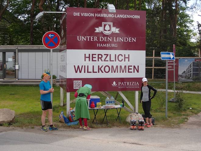 Ochsenstieg / Jütlandring 14.24 Uhr Die Wiese rund um den Verpflegungsstand herum stand unter Wasser. |
