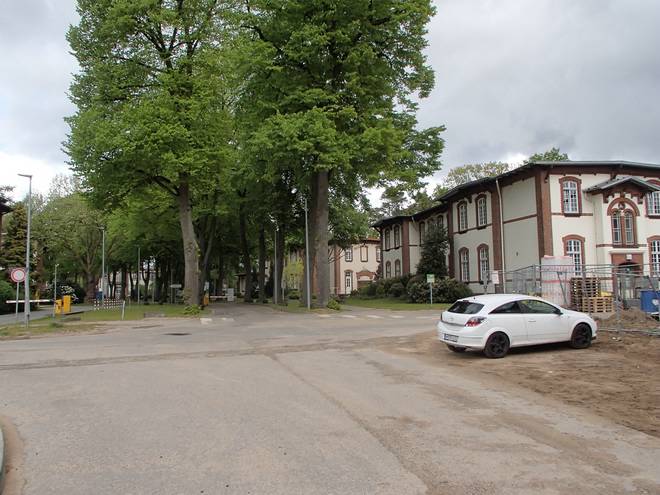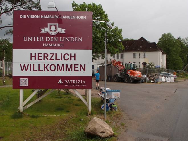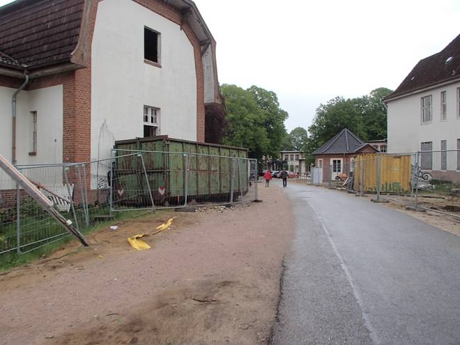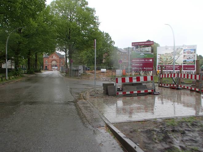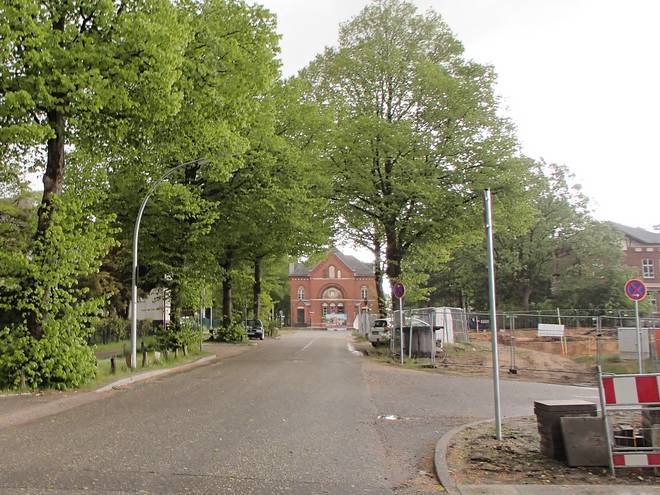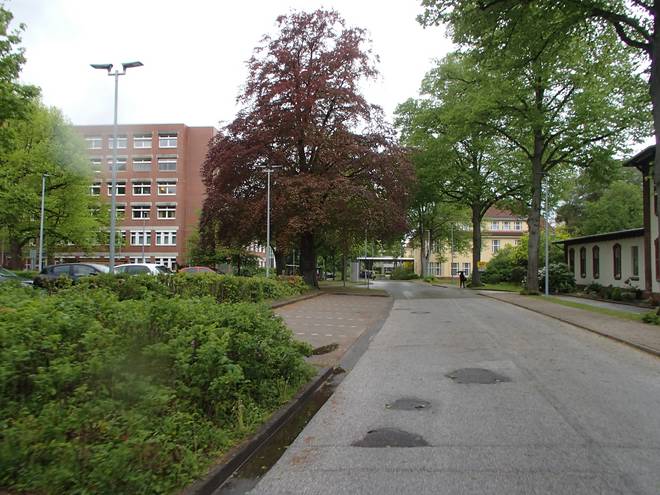 Ochsenstieg / Jütlandring 10.02 Uhr 11°C, Sonne, ein frischer Wind. So wurden wir am Feiertag auf dem Gelände der Asklepios Klinik Nord (Standort Ochsenzoll) begrüßt. Die südliche Geländehälfte wird gerade zu Wohnungen umgebaut, während nördlich der Klinikbetrieb weiter geht. |