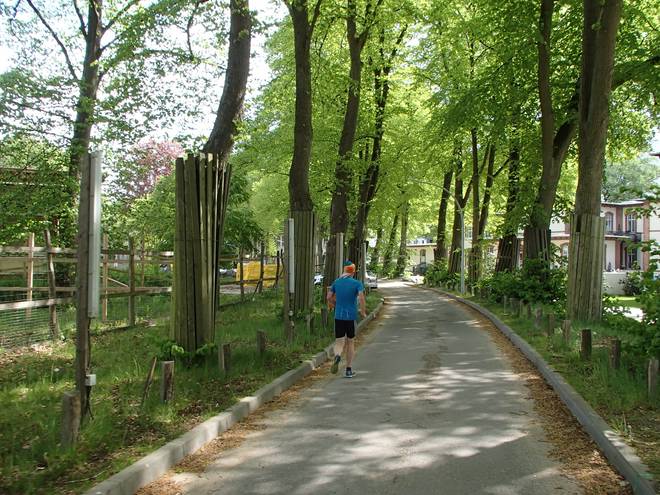 Runde 2 10.25 Uhr / Km 2,6 Richtig gut ging der Lauf für mich nicht los. Ab Beginn hatte ich massiven Magen- und Darmprobleme. In der Hoffnung auf Linderung legte ich gleich in Runde 2 eine Pinkelpause ein. |